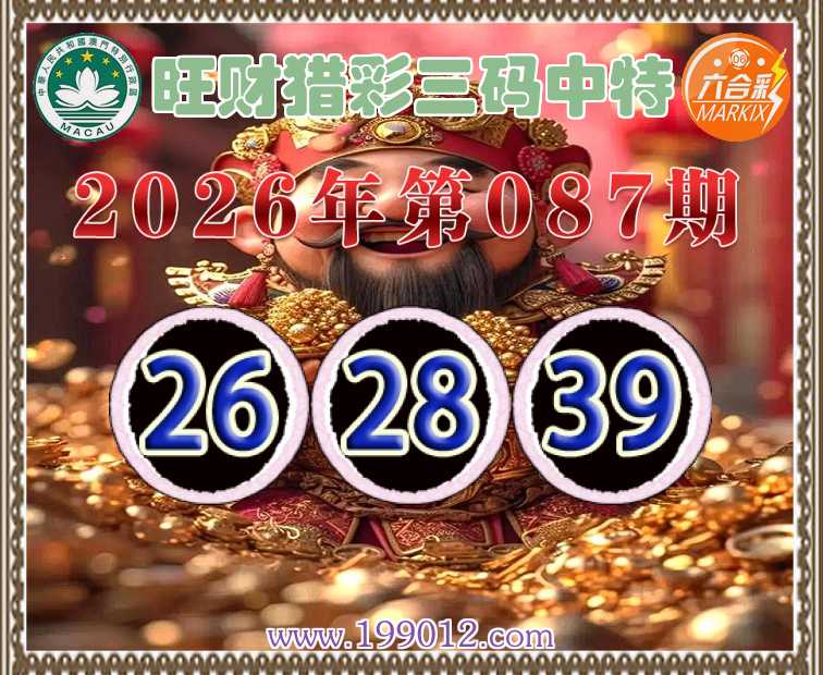 087期:《旺财猎彩》 ♠️三码中特♠️【26.28.39】开:26