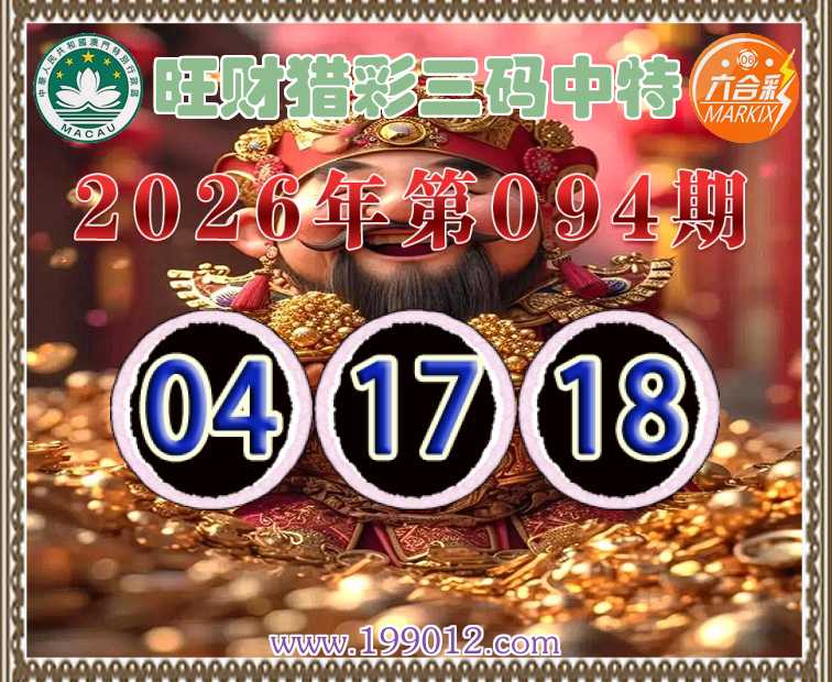 094期:《旺财猎彩》 ♠️三码中特♠️【04.17.18】开:17