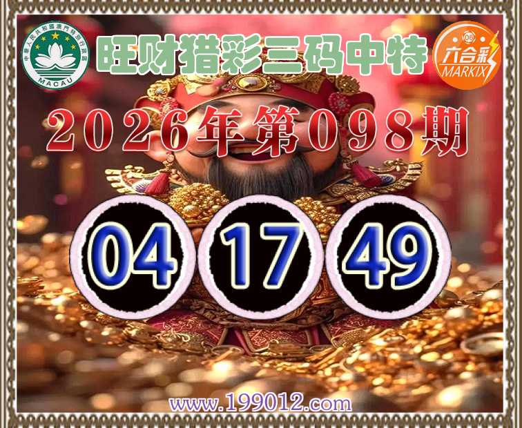 098期:《旺财猎彩》 ♠️三码中特♠️【04.17.49】开:17