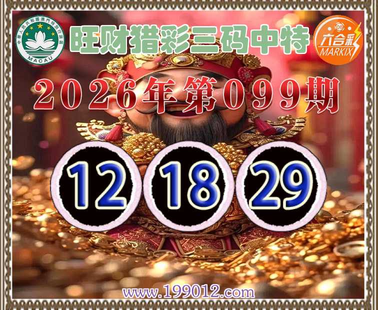 099期:《旺财猎彩》 ♠️三码中特♠️【12.18.29】开:12