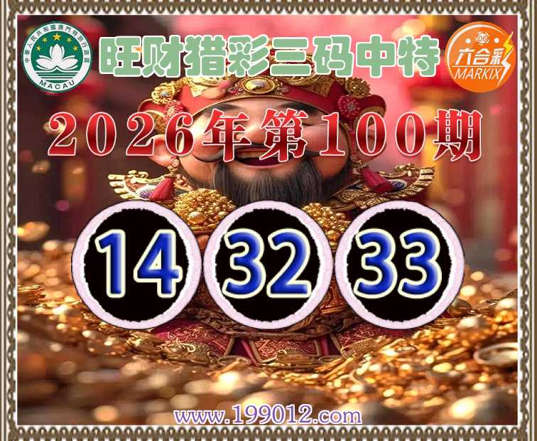 100期:《旺财猎彩》 ♠️三码中特♠️【14.32.33】开:33