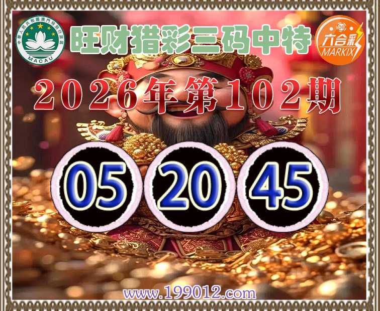 102期:《旺财猎彩》 ♠️三码中特♠️【05.20.45】开:20