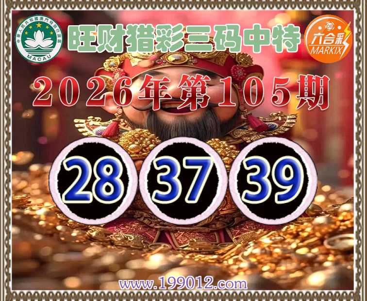 105期:《旺财猎彩》 ♠️三码中特♠️【28.37.39】开:28